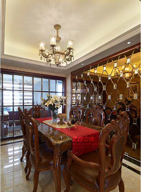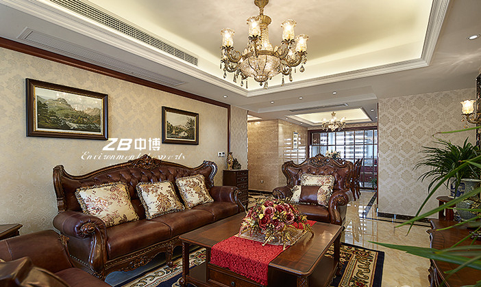 本案欧式新古典如同陈年的佳酿,新冲的酽茶。浓郁的生活芬芳,醉人的细节锻造。硬装用简约的欧式线条,营造明亮干净的居家环境。软配上以咖啡色系为主,木质家具回归了生活的本质。木质的厚重和沉稳,代表了一个阶层稳固的经济基础,也营造了一种非常安宁祥和的居家氛围。本案主要特点是环保特色。对材料的精心挑选和匹配,符合了环保装修的要求,对健康更有保障。对业主生活习惯的高度掌握,对设计艺术和生活的高度契合,让空间充满了生活的气息,但是富有高品位。一种新颖的高品位生活方式,便由此生发,让人身心两忘。