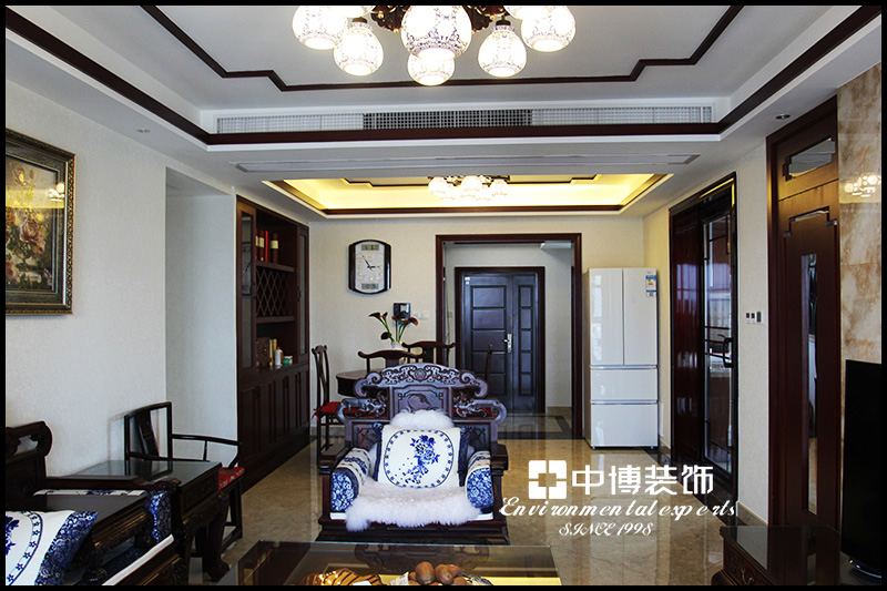 本户型以新中式风格为主,在色调上配以暖色,整个设计体现了饱含中国祝福的吉祥如意构思。业主喜欢中国传统文化,讲究生活品质,所以在设计的时候以格调清雅含蓄,端庄稳重为基本。配合中国传统元素。
