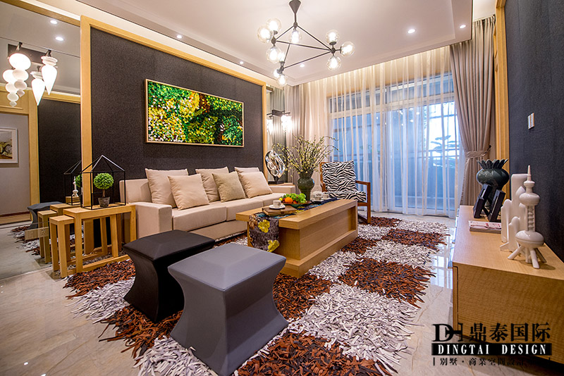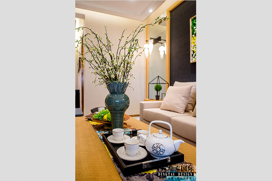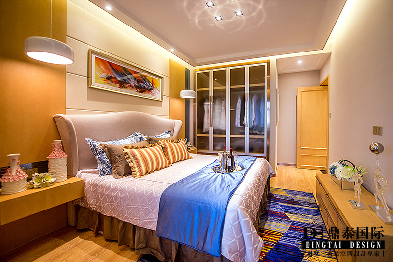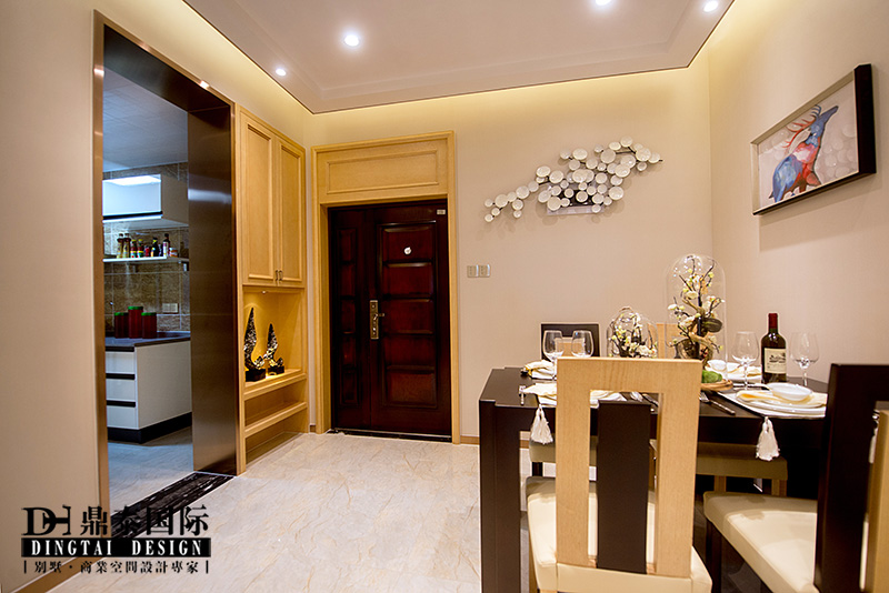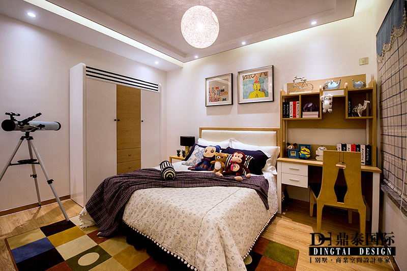 本案根据业主需求,设计师在设计规划时考虑满足需求功能的同时,又要满足设计的美感。进门把原有户型正对入户的主卧门改成了一个入户玄关背景,通过材质的混搭结合,和色彩的比列搭配,让人进门就有眼前一亮的感觉。入户鞋柜采用了装饰和实用相结合的做法,将生活的琐碎藏匿于艺术美感之中。客餐厅引入了台式休闲的生活理念,但在休闲之中通过金属色提高了现代的感觉,整个空间给人一种舒适安逸的感觉,同时又能感受到整个环境的主题,和它应该有的一种睿智的态度。餐厅通过简洁的软装搭配和质感很强的墙纸来提升空间感,客厅电视背景和沙发背景相互结合和呼应,白橡饰面做出原木最本来的颜色,淡淡的润色凸显出背景深蓝的亚麻布,沉稳中凸显出活泼的味道。电视背景右侧的隐形门设计,巧妙的隐藏了主卧的入口,同时保证了背景的完整性。主卧里沿用了原木本色的色调,搭配米白色的软包,把整个卧室的氛围衬托的十分温馨、舒适,中性色的软装搭配体现出业主的品味。小孩房在整体的木质色调上提升了活泼色调,通过床品软装的搭配让整个空间活跃了起来。整个案例通过点——线——面的有效搭配,组成和谐的三维空间设计,让整个室内空间赋予韵律美,空间的合理划分会给人们以美的感受,让整个空间流线自然舒适。