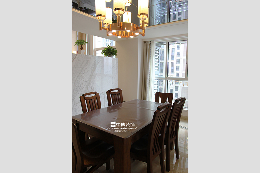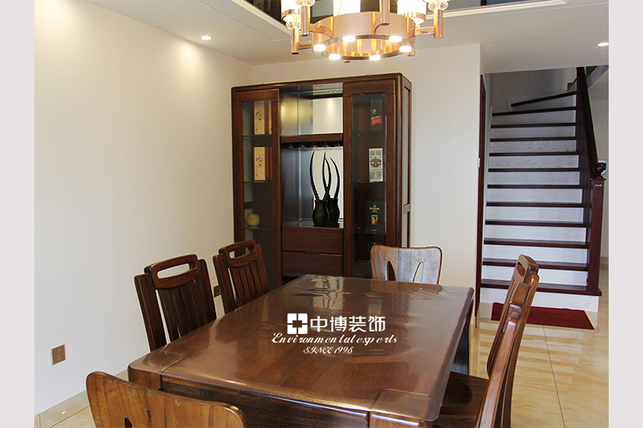 餐厅沉稳大气,以深色木作为主,又将家具、挂画等众多元素又统一在同色系的调配下,相辅相成,相得益彰,迅速提升空间的品质。