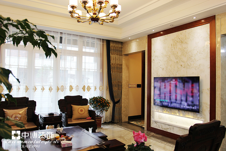 本案采用新中式风格,新中式以其婉约、含蓄、禅意,让人在忙碌而疲惫的生活方式中放慢脚步,感受生活的轻松与惬意。不同的风格赋予空间不同的气质,简洁的线条,构造出空间的层次感,中式画作强烈的艺术气息充盈着每一个空间角落,开启了一个淡雅与本真的境界。中式山水挂画、线条、艺术盆栽等,每一处都是对生活的艺术化展现,精致的细节摆设,繁简有序,缓和了冰冷的氛围,柔和了硬直的线条,让家居空间多了自然的宁静。