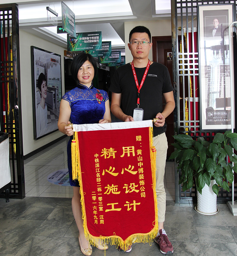 9月18日,中博装饰收到来自中铁滨江名邸汪姐送来的载满赞誉的锦旗,满满都是信任!
