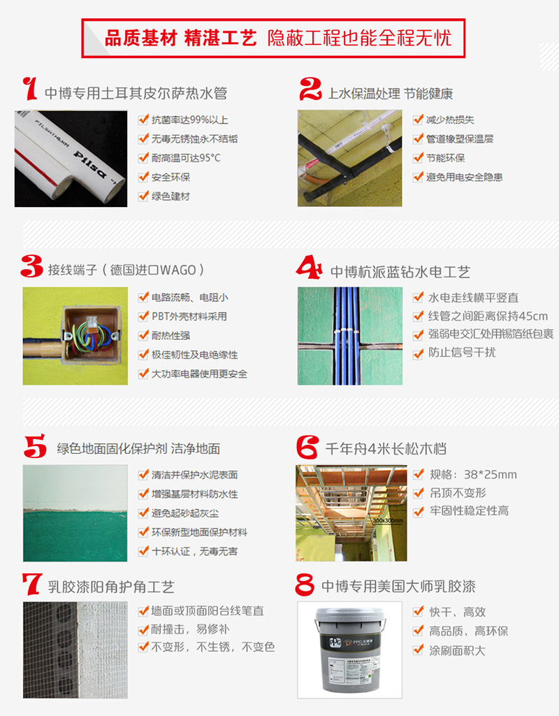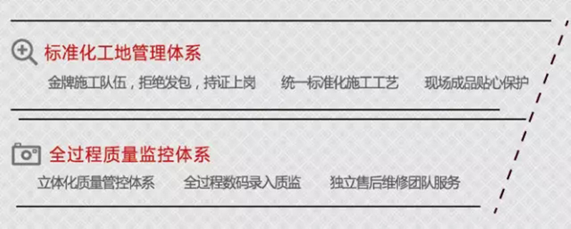 装修涵盖设备、材料、施工、设计、水、电等等,是一项深入系统的工程项目。中博独创研发:4套标准化服务模式,10道开工准备流程,8项施工组织设计项目,打造出别具一格的“杭派蓝钻工程”。标准化工地将现代工业生产的新理念注入高端家装服务体系。