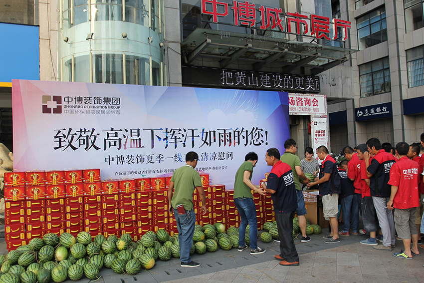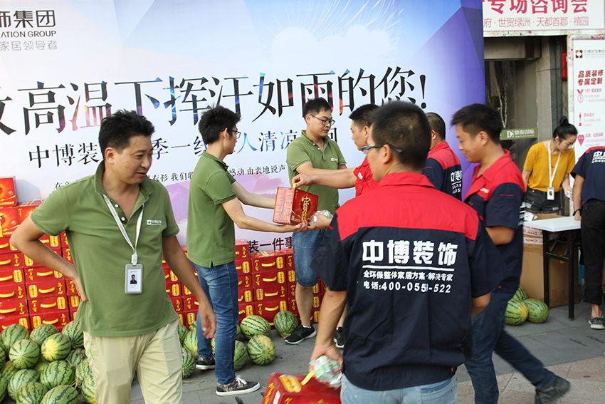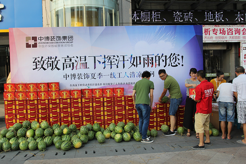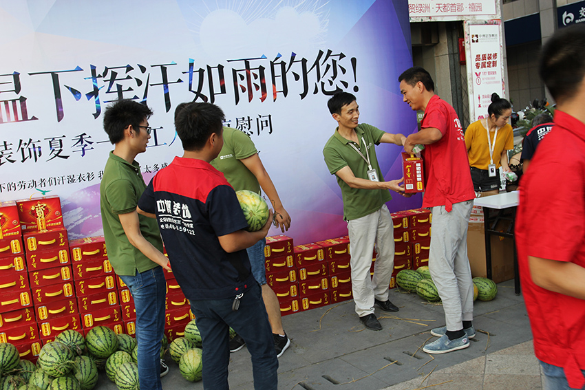 在这炎炎夏日,我们以丝丝的关爱,送上点点清凉,以人为本,为爱筑家,共创幸福。由中博副总冯总带领工程部管理团队为一线工人送清凉,向坚守在工作岗位上的一线员工表示最亲切的关心和问候。