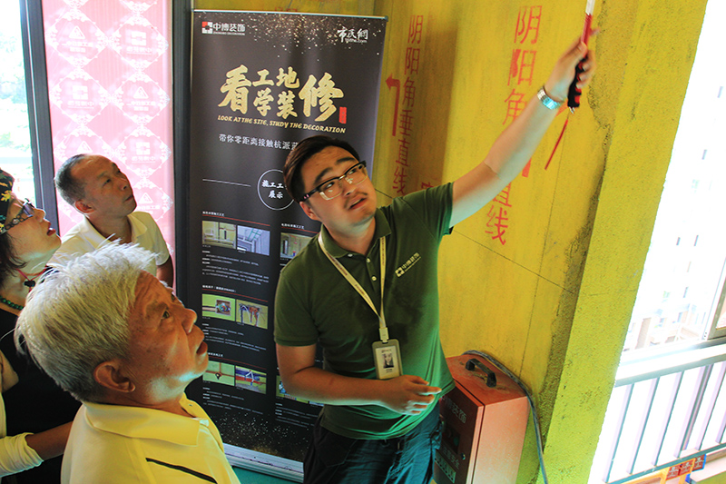 中博装饰工作人员详细的为业主讲解泥工和木工工艺,业主们对中博的材料和工艺赞不绝口!中博以环标工艺得到多数业主的极大认可,想要住好房,好的施工工艺是必需。