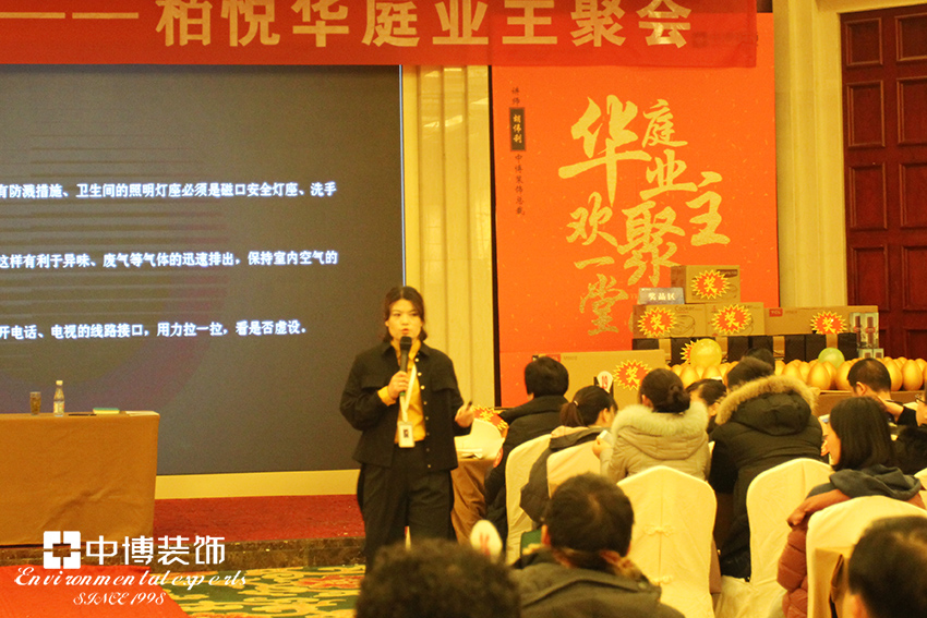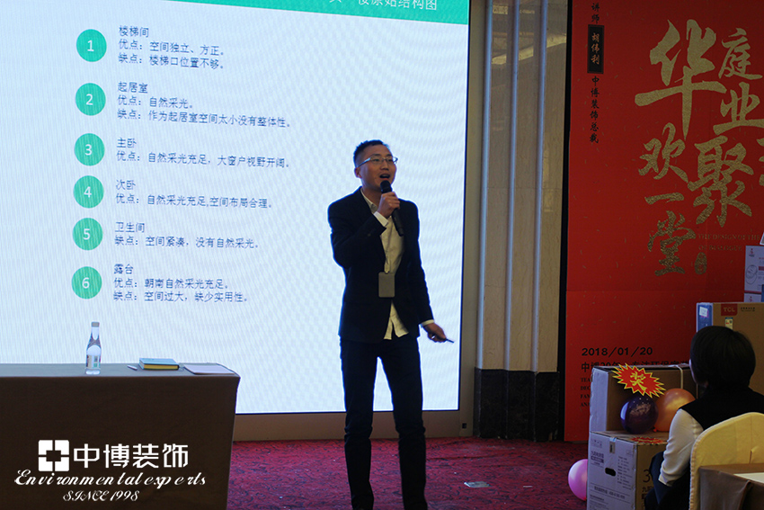2018年1月20日,中博装饰:“对话大师,品鉴设计——栢悦华庭专场” 130多户栢悦华庭业主齐聚华茂国际大酒店,现场与栢悦华庭业主精心分享家居设计、施工工艺、风水等知识,旨在为栢悦华庭业主圆梦筑家。