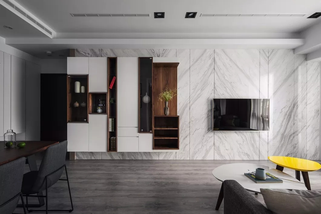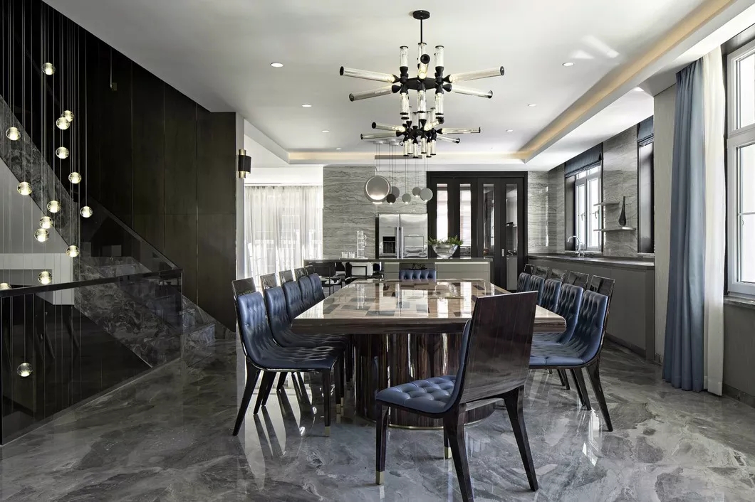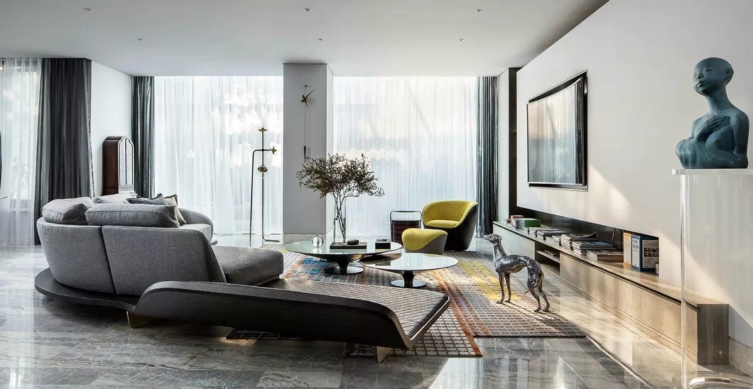光亮、平整的抛光面可以展现一种低调的奢华,它素雅、冷静、富有格调美,不仅可以中和整个空间过于冷硬的气质,而且展现了人们对沉静自持、舒缓简单的向往。