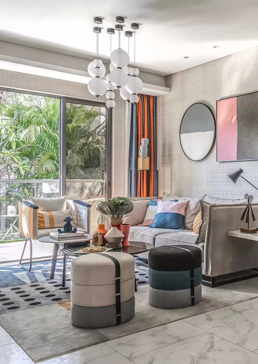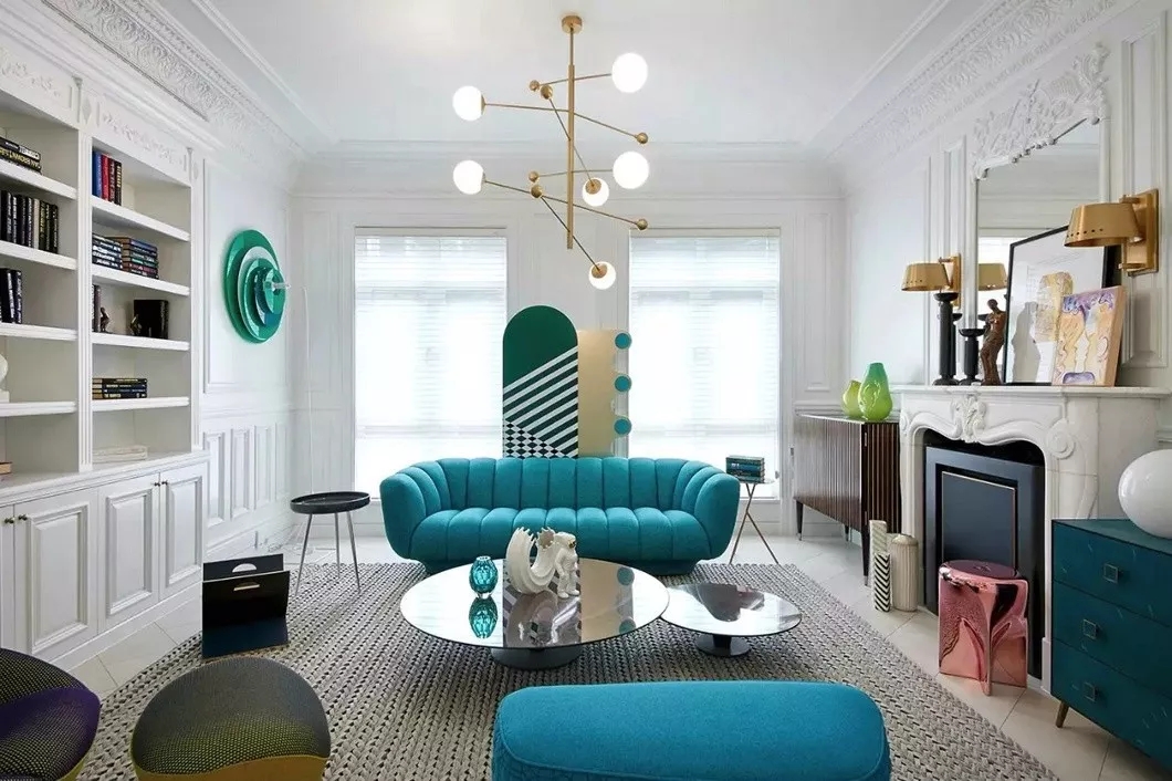 几何元素运用得好,可以使室内呈现出高逼格的视觉冲击。因为它是随性不规则的,给人一种不受束缚的自由感和动感,增加空间亮点的同时,还可以把其他家居元素衬托得更有活力。