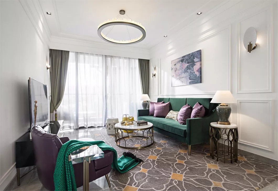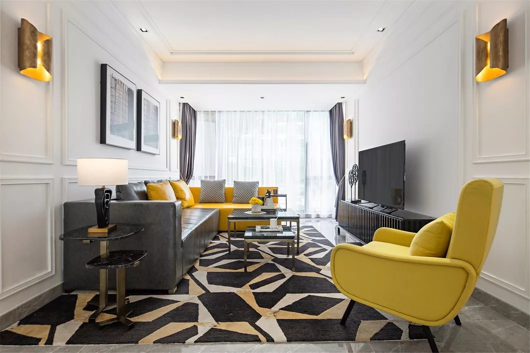 当然,地毯的尺寸、色调、质感等都要根据空间的整体风格来确定,相得益彰,层次分明,才能使整个空间显得时尚又精致,让人的视线和心境获得了无限的延伸。