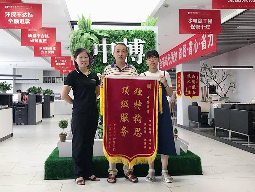进入8月,中博装饰又收到了两面业主送上的锦旗,分别是来自滨江一号和世贸绿洲的业主,他们对中博装饰的设计、施工和服务非常认可,特意冒着酷暑送来锦旗,表达对中博的赞美之意。