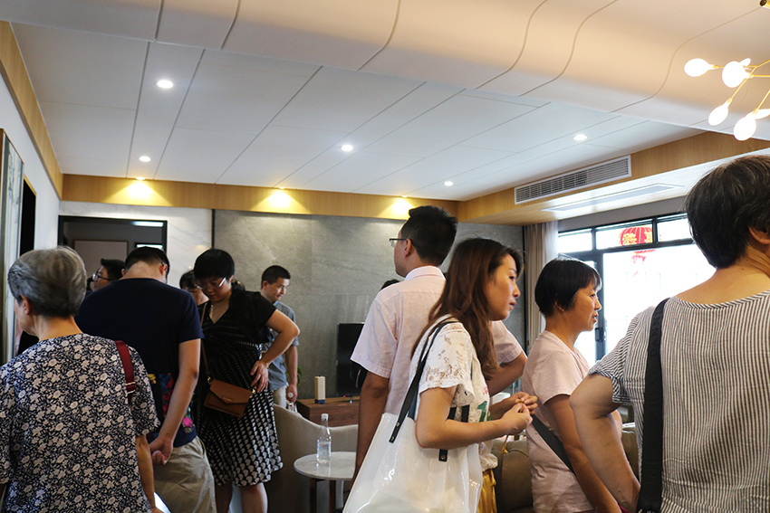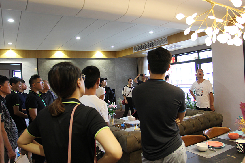 成品样板间的设计效果更是让业主们赞不绝口,无论是户型规划、硬装造型设计、软装家居搭配都让人觉得眼前一亮,业主们纷纷围在主案设计师边,仔细倾听设计要点。
