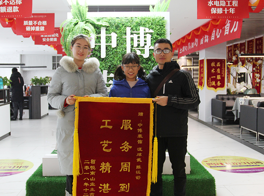 中博装饰从成立发展至今,始终坚持恪守“为业主打造环保健康品质居家”,实现一户一口碑,中博每年都会收到特别多的业主送来锦旗,感谢业主对中博的信任与肯定,我们会为打造黄山家装第一品牌,更尽心尽力地为客户服务,达到更好的效益,提高自身的服务水平。