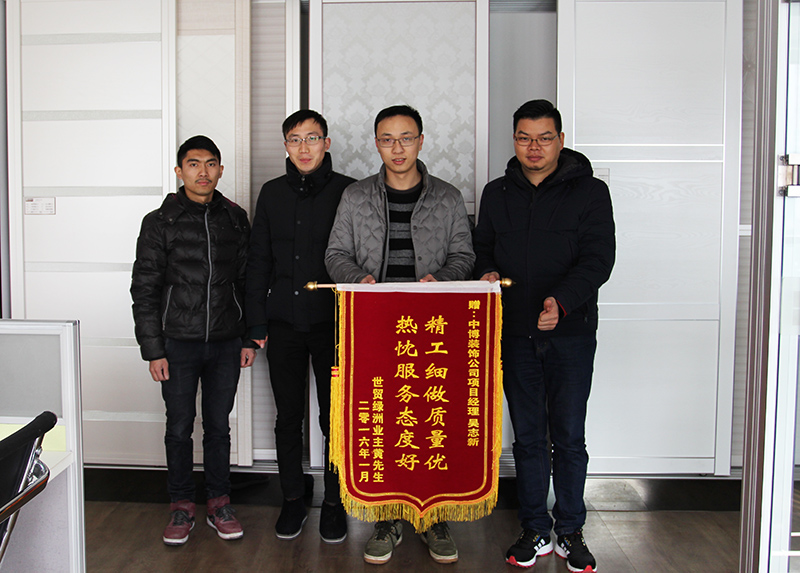 寒潮挡不住业主的热情,世贸绿洲业主黄先生送来一面“精工细作质量优,热忱服务态度好”的锦旗,以答谢为其服务的吴志新项目经理和汪利鑫设计师。感谢黄先生对中博装饰的褒奖!