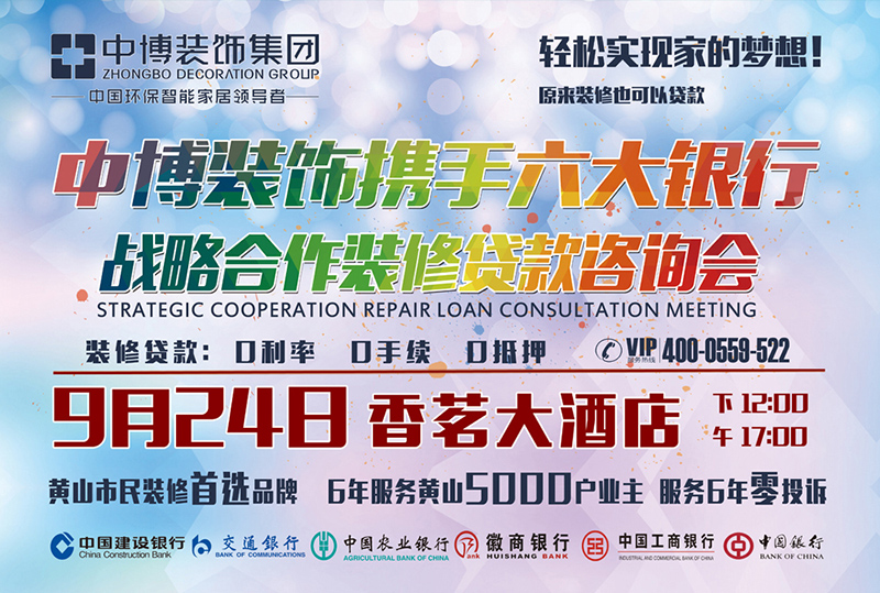 中博装饰携手六大银行战略合作装修贷款,让您的家居梦想一步到位!家装分期“0”利率、“0”手续、“0”抵押,您贷款、我付息,轻松装修“0”压力!...