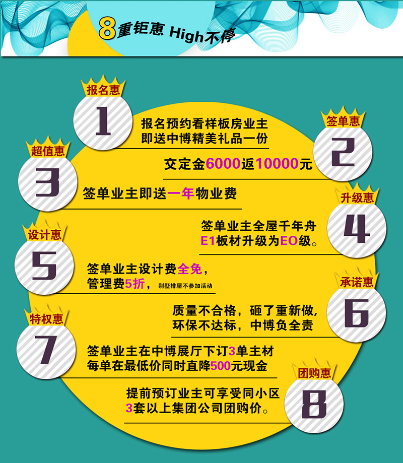 特权惠:签单业主在中博展厅下订3单主材每单在最低价同时直降500元现金;