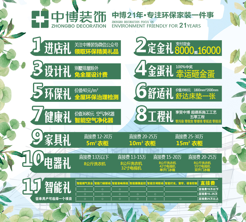 砥砺前行21载,中博装饰专注环保家装一件事。21年专注环保装修,21年精耕中高端领域,让中博更理解您对生活品质的追求,涵盖了材料、工艺、环保、管理四大质量保障系统,为每一位业主提供最具系统性的整体家装方案。