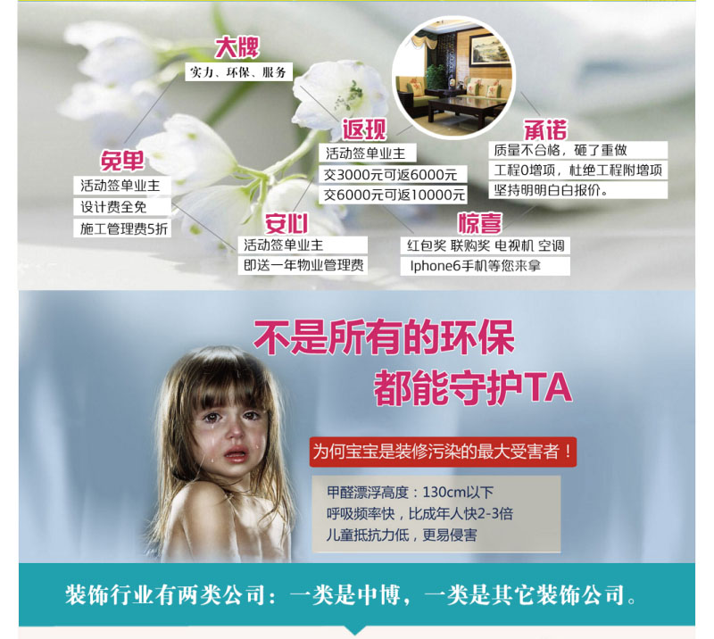 中博装饰为回报昱城业主多年来的关注与支持,更是推出装修八大钜惠:交6000抵10000、设计费全免,管理费五折、送物业管理费、联购送好礼……