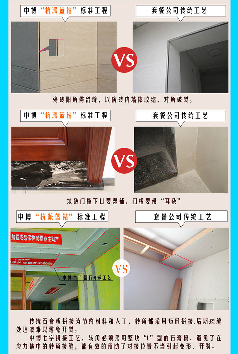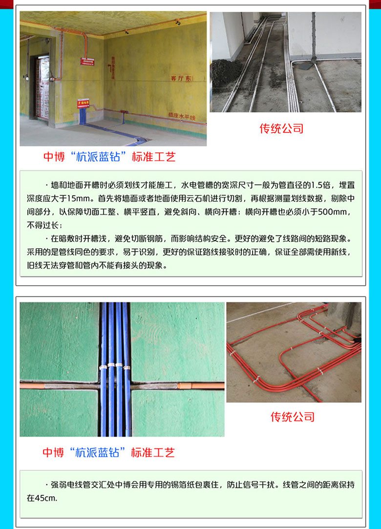 “耳听为虚,眼见为实”,对很多业主来说,选装饰公司不要偏听偏信,要到他的样板房和施工工地看看,好不好一看就知道,一个装修公司的样板房如果存在问题是掩盖不了的。中博装饰邀业主先看样板房和施工工地,明明白白装修。