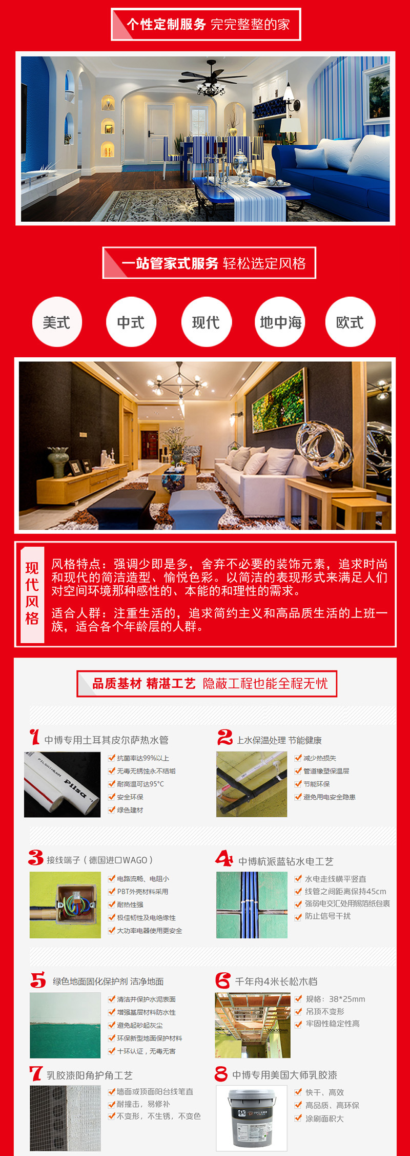 7、活动期间签单业主按中博杭派蓝钻环保示范工程标准施工,并开通总经理24小时监督热线,亲自监督,为您的爱家报价护航。(质量不合格砸了重做,环保部达标我们负全责)